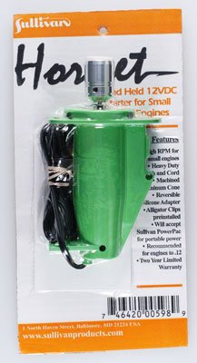 This is Sullivan's Hornet 1/2A Starter. / / FEATURES: Compact and lightweight but powerful enough to start .049 to .12 / sized engines. / Constructed of glass filled nylon and has a machined aluminum cone / with a silicone insert. / / INCLUDES: One Hornet 1/2A Electric Stater with Aluminum cone and silicone / insert. / 2 year warranty by Sullivan Products